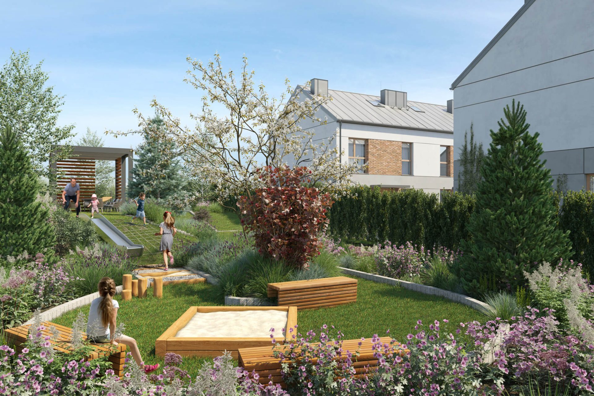 Inwestycja Polna 34, położona jest w miejscowości Liszki, które są na zielonych przedmieściach Krakowa. W naszych wizualizacjach staraliśmy się przedstawić klimat małego osiedla w terenie zielonym, które oferuje wysoki komfort życia. Przy osiedlu znajduje się również wspólny ogród który będzie idealnym miejscem dla zabaw dzieci czy sąsiedzkiego grilla.
