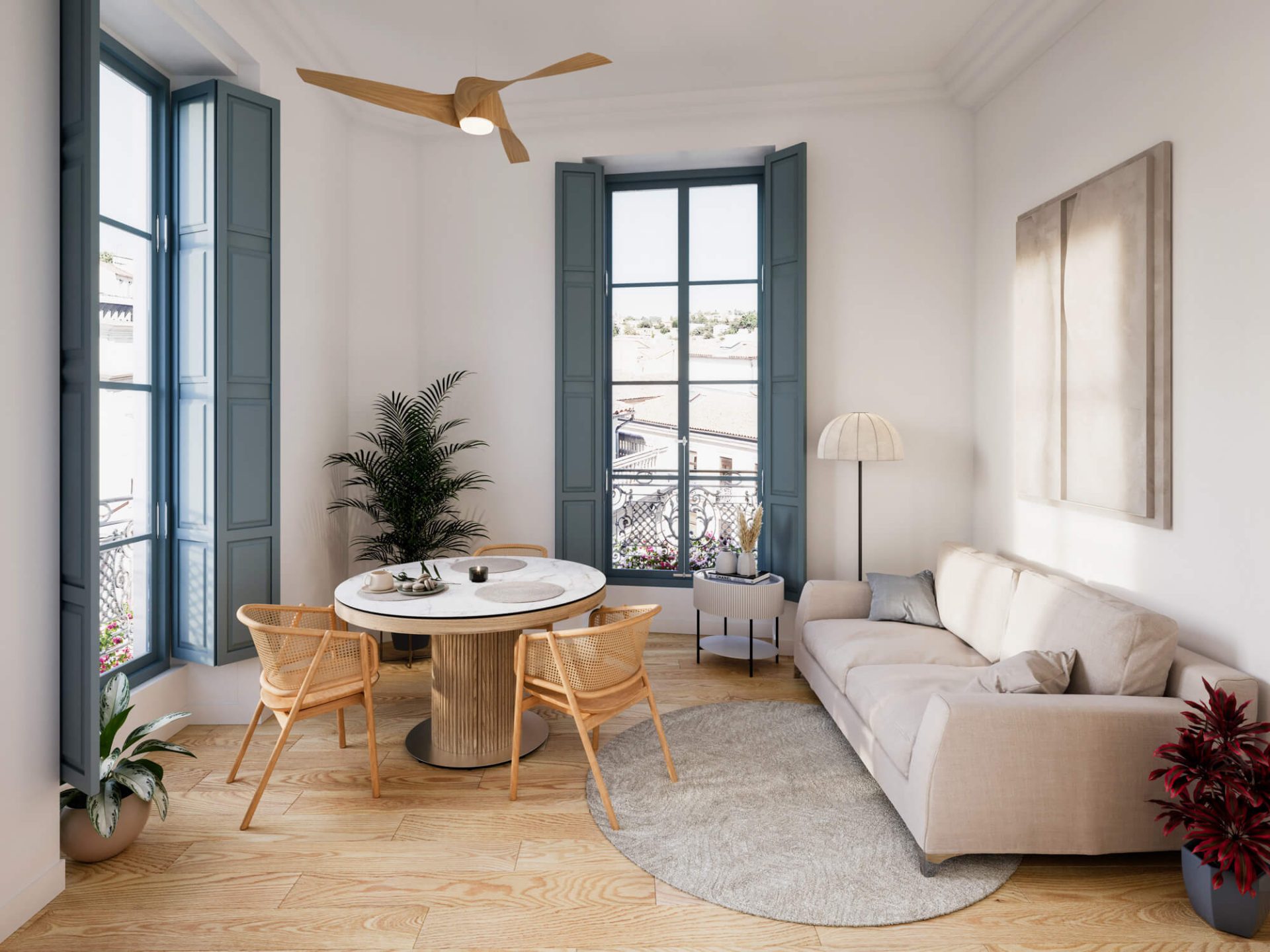 Dla odrestaurowanej kamienicy we Francji przygotowaliśmy wizualizacje, które przedstawiają jej elegancką elewacje. Dzięki zaawansowanej technologii wizualizacji 3D mogliśmy wiernie oddać strukturę materiałów, subtelne kolory oraz detale charakterystyczne dla francuskiej architektury miejskiej.