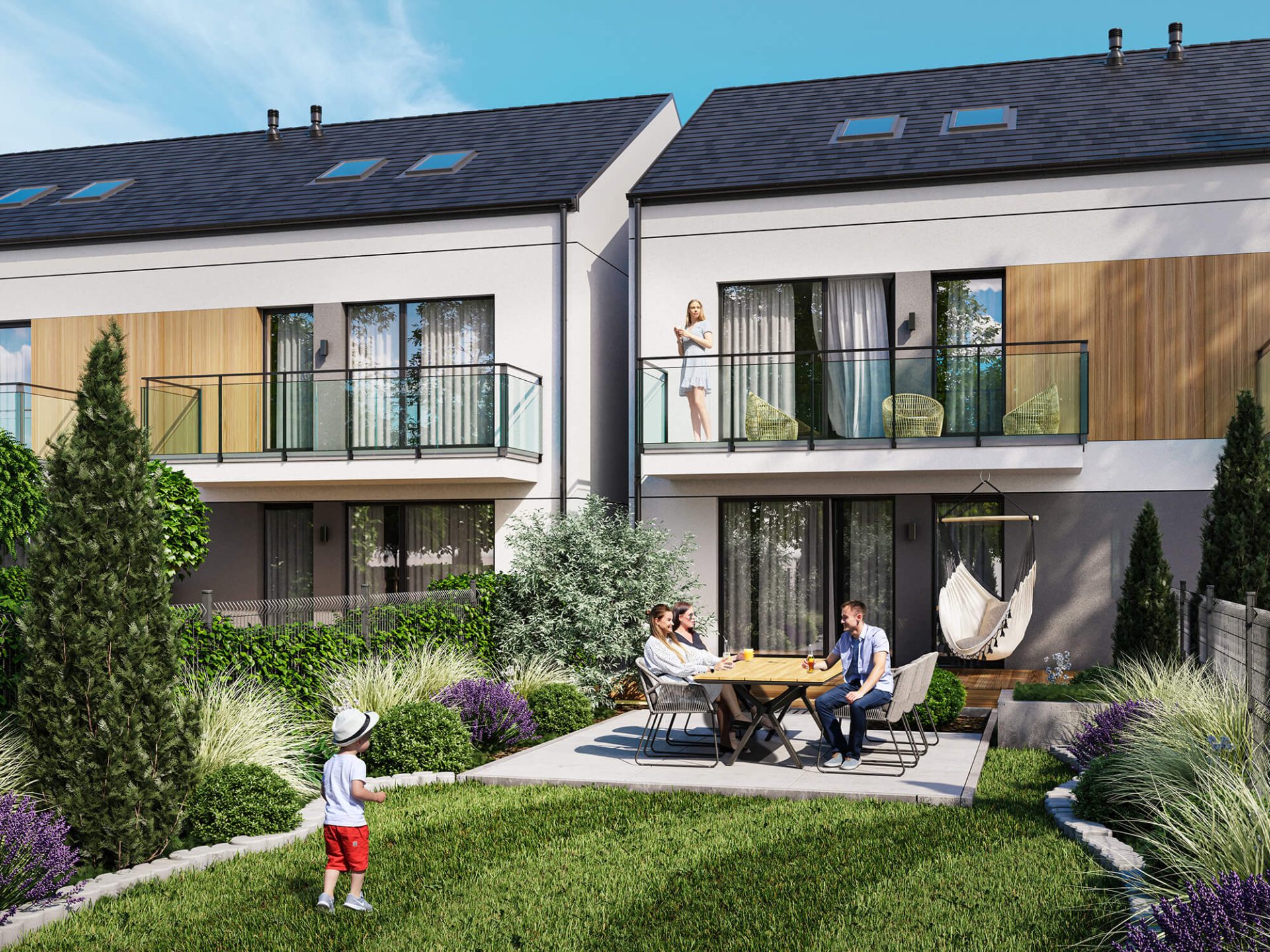 Nasze wizualizacje dla osiedla Wolańska Park to kameralna zabudowa domów oferująca dwa typy mieszkań. Każdy z nich został zaprojektowany z myślą o przyszłych mieszkańcach, stonowana estetyka osiedla i dopracowane detale architektoniczne tworzą spójną, przyjazną przestrzeń do życia.