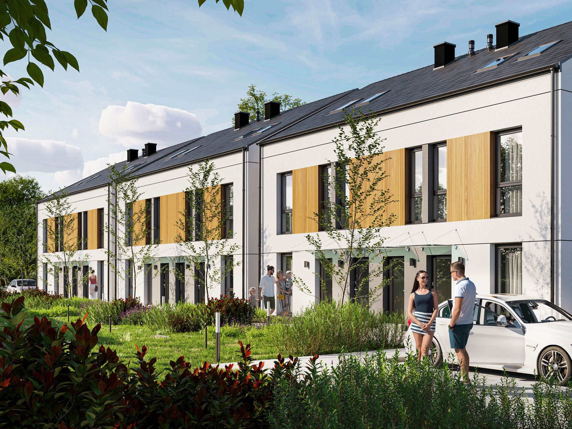 Dla tej inwestycji przygotowaliśmy wizualizacje zewnętrze oraz wizualizacje wnętrz, które przedstawiają kameralny charakter osiedla oraz nowoczesną, ale przytulną przestrzeń.