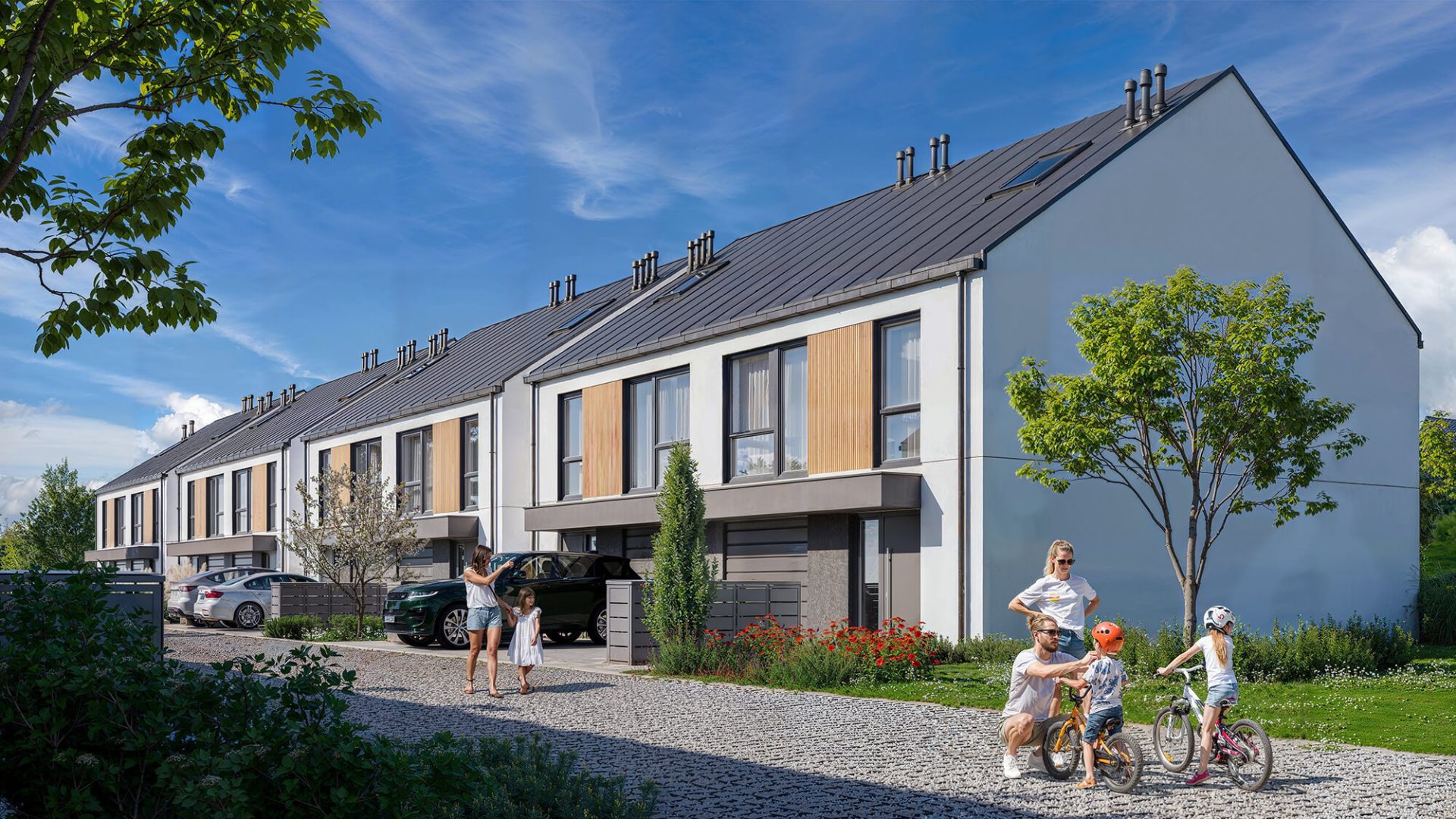 Dla tej inwestycji przygotowaliśmy zestaw wizualizacji, które oddają kameralny charakter osiedla oraz przyjazną przestrzeń stworzoną z myślą o codziennym komforcie mieszkańców.