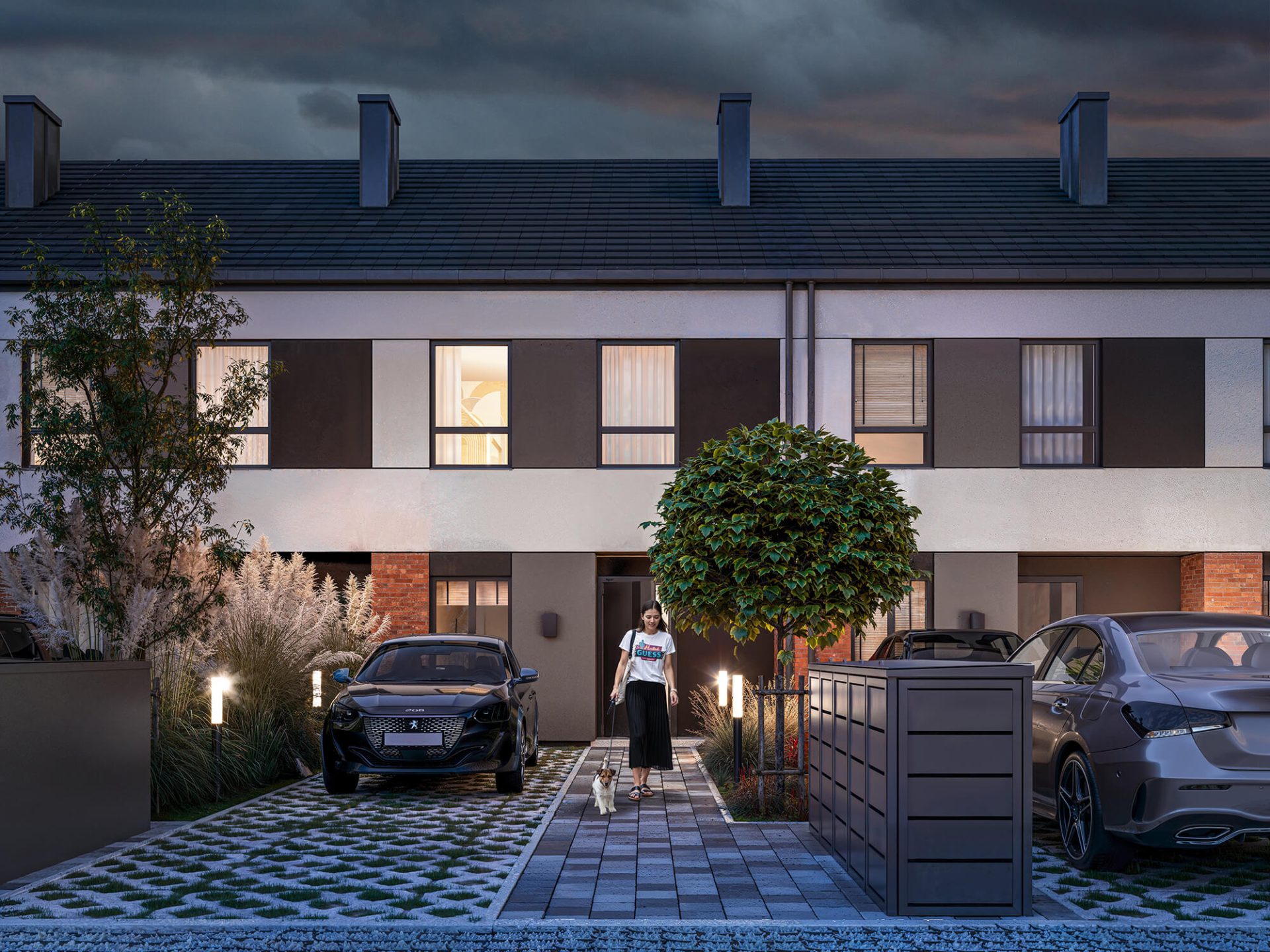 Osiedle Nova Bursztynova to inwestycja znajdująca się niedaleko Słupska. Nasze wizualizacje przedstawiają nowoczesne osiedle domów w zabudowie szeregowej stworzone z myślą o przestrzeni, która łączy wygodę i estetykę.
