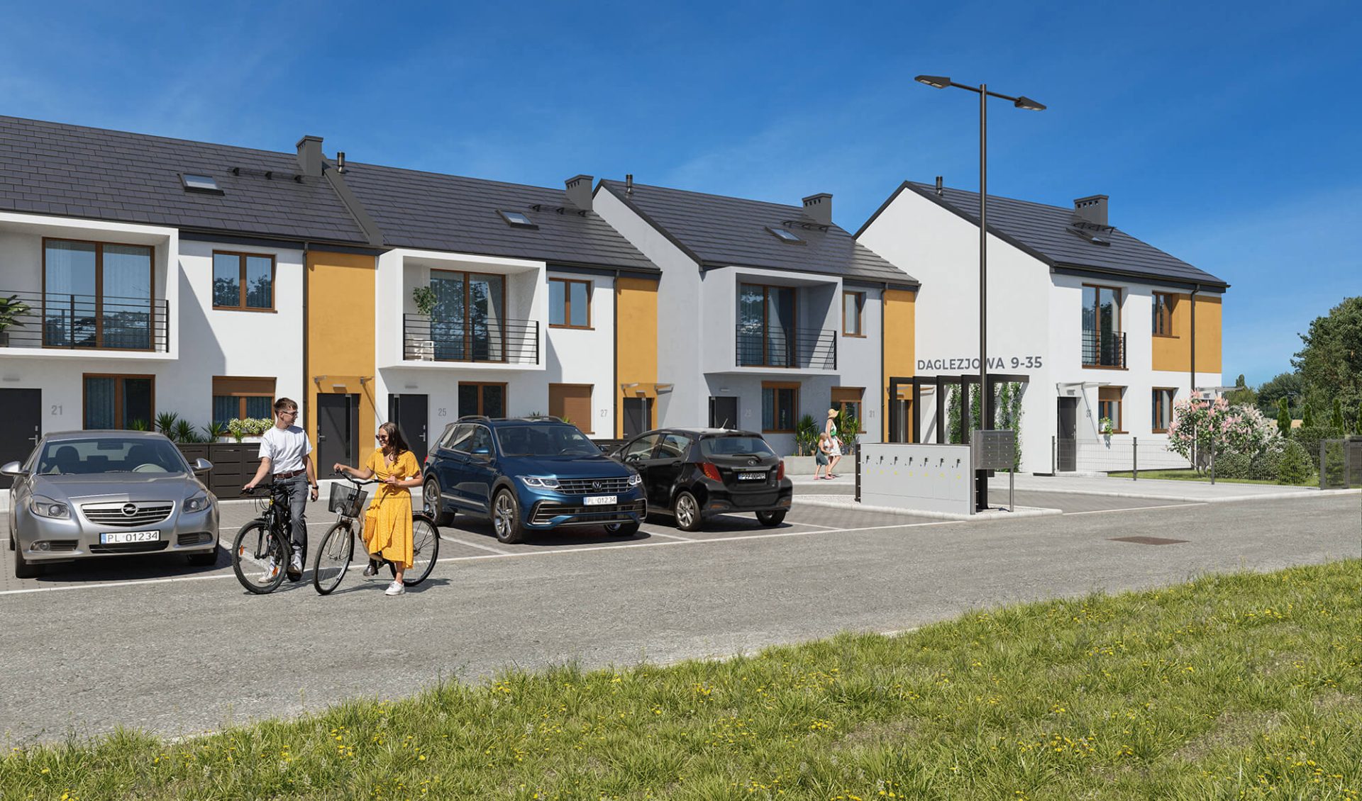 Stworzyliśmy kompleksowe materiały dla osiedla W Oławie, Dzięli realistycznym wizualizacjom przyszli mieszkańcy mogą dokładnie zobaczyć co wybierają — układ domu, przestrzeń, otoczenie, układ parkingów, elementy małej architektury – wszystko to zostało dokładnie ujęte na wizualizacjach. Ponadto mamy tutaj przykładowe zaprojektowane przez nas wnętrza, które pokazują możliwości aranżacyjne mieszkań.